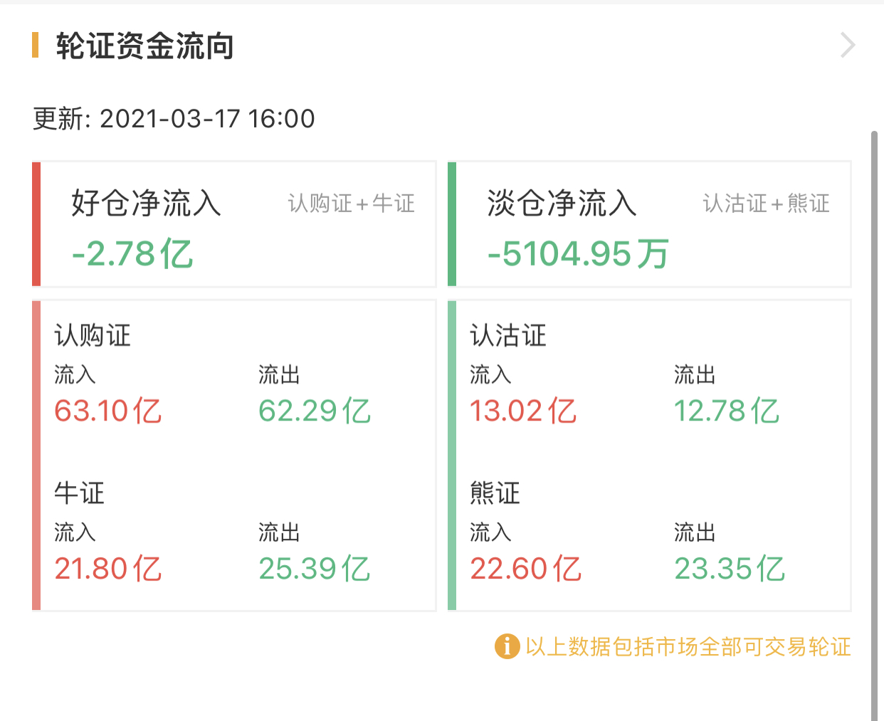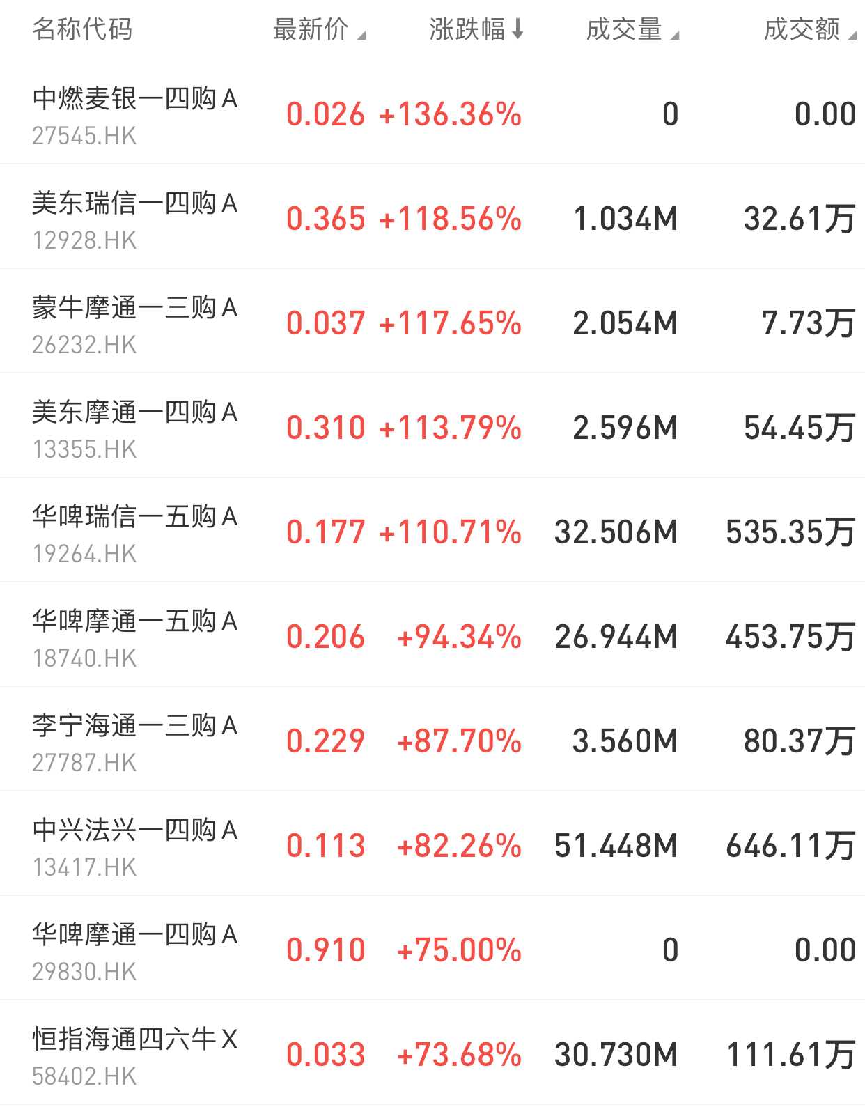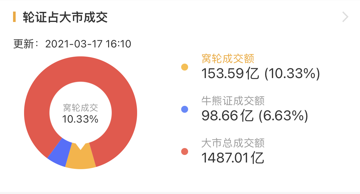 其中,窝轮总成交153.59亿港元,牛熊证总成交98.66亿港元。