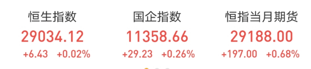 周三,恒指早盘跌0.12%,全天继续缩量震荡。截至收盘,恒生指数涨6.43点或0.02%,报29034.12点,全日成交额达1487.01亿。国企指数涨0.06%,报11358.66点,红筹指数涨1.47%,报4219.37点。
