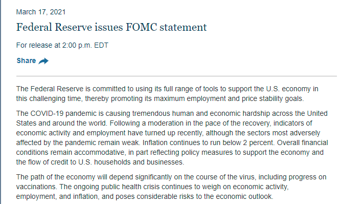 北京时间3月18日凌晨两点,美联储发布了一份480个字(英文)的利率决议声明,宣布维持联邦基金基准利率在0%-0.25%不变。