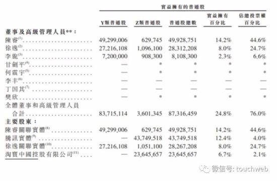此次B站香港IPO前,B站董事及高管一共持股24.8%,陈睿持股14.2%,有44.6%的投票权;哔哩哔哩创始人兼总裁徐逸持股8%,有24.7%的投票权;副董事长兼COO李旖持股2.3%。