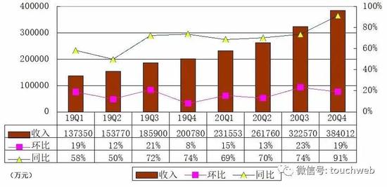 其中,B站2020年第四季度营收为38.4亿元(约5.89亿美元),较上年同期的20亿元增长91%。