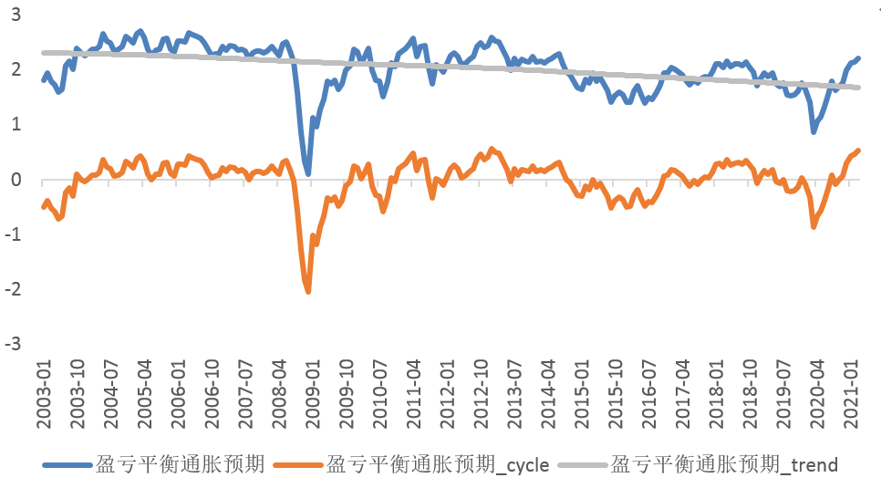 图4:盈亏平衡通胀预期、周期项和趋势项,资料来源:Wind,天风证券研究所