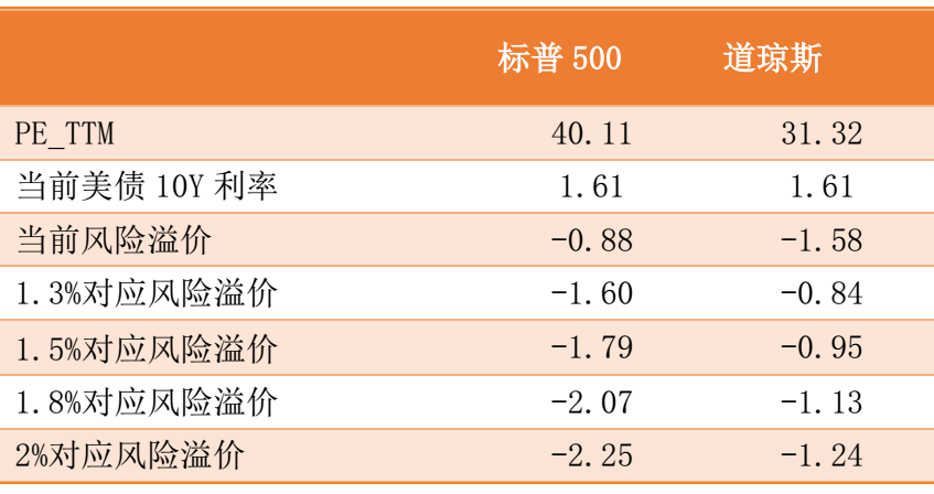 表1:美债长端利率对应美股风险溢价标准差,资料来源:Bloomberg,天风证券研究所