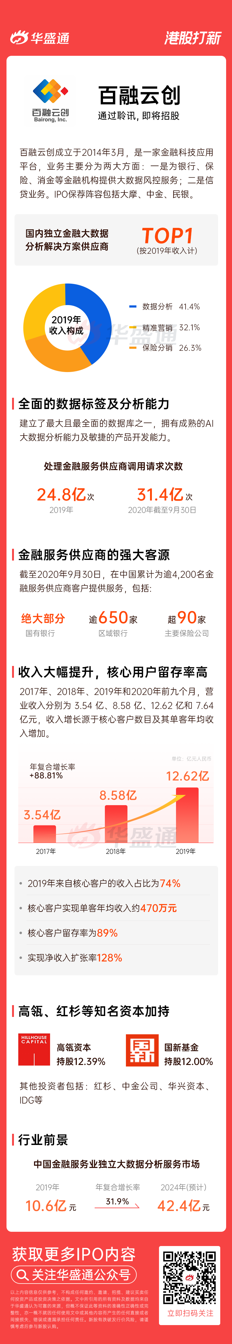 市场消息称,百融云创本次引入3名基石投资者,Cederberg(赛德保资本) ,China Structural Reform Fund(中国诚通旗下中国结构调整基金)及Franchise,涉及2.2亿美元(约17.16亿港元),以招股价上限31.8元计,相当于集资额43.3%。