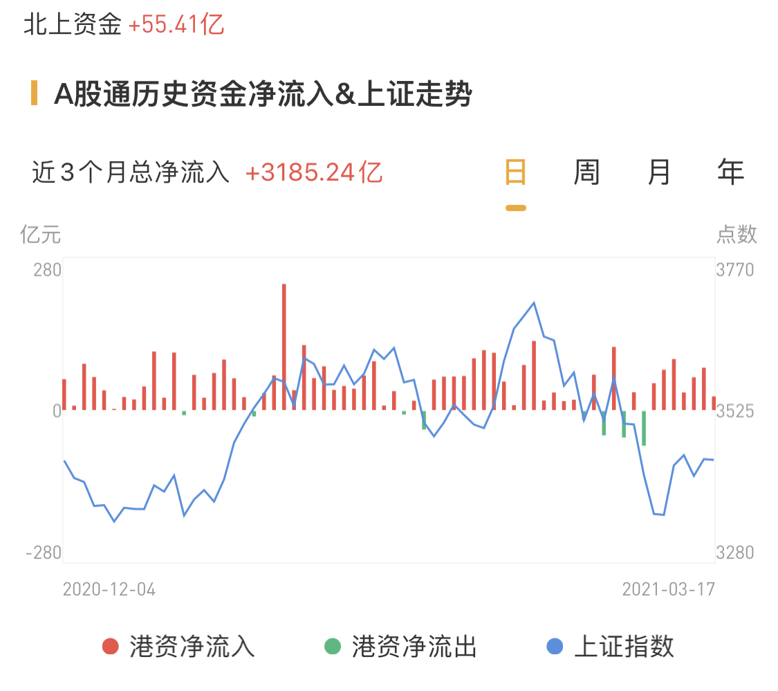北上资金今日净流入55.41亿元,前一个交易日净流入超25亿元。