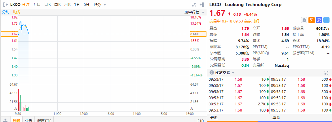 箩筐技术(LKCO)一度涨超16%,消息面上,公司宣布收购中国甲级测绘资质图商易图通100%股权。
