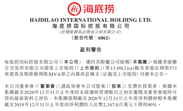 海底捞咬牙度过了艰难的2020年,全年净利润下降90%。