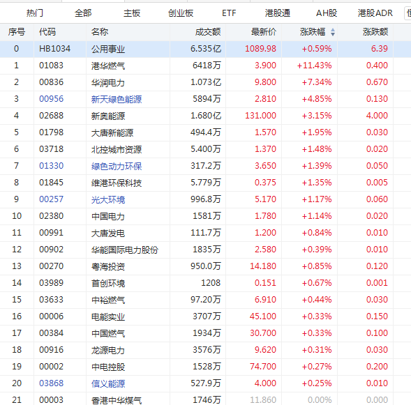 华盛资讯3月19日消息,公用事业板股今日全线走强,港华燃气上涨超11%,领涨板块,华润电力上涨超7%,新天绿色能源上涨超4%。