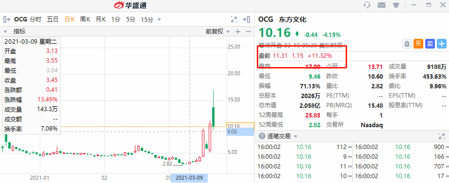 NFT概念股盘前走高,香港大公文化集团Takung Art(TKAT)涨超23%,东方文化(OCG)涨超11%,网络安全公司WISeKey International(WKEY)涨超10%。(NFT是什么?)
