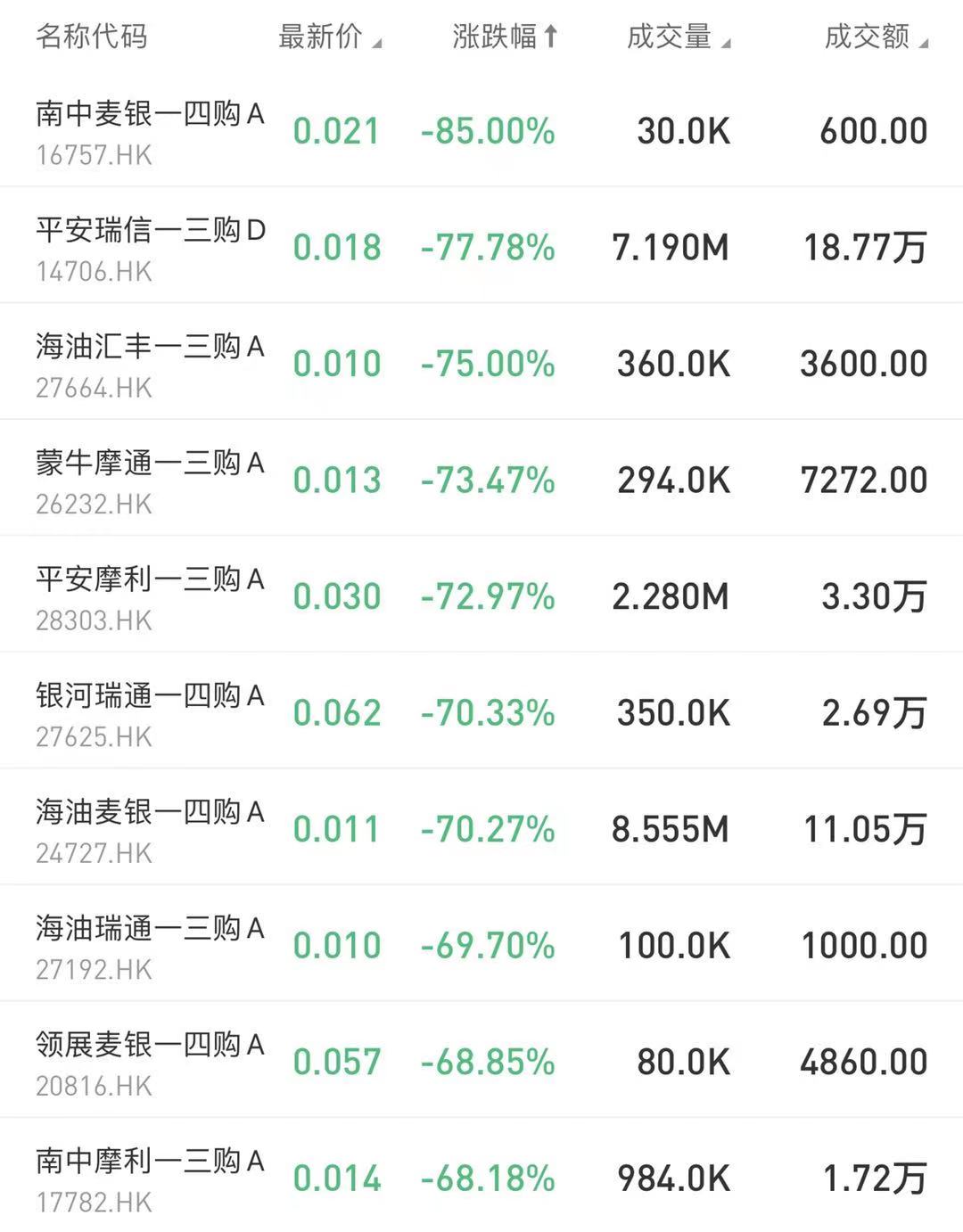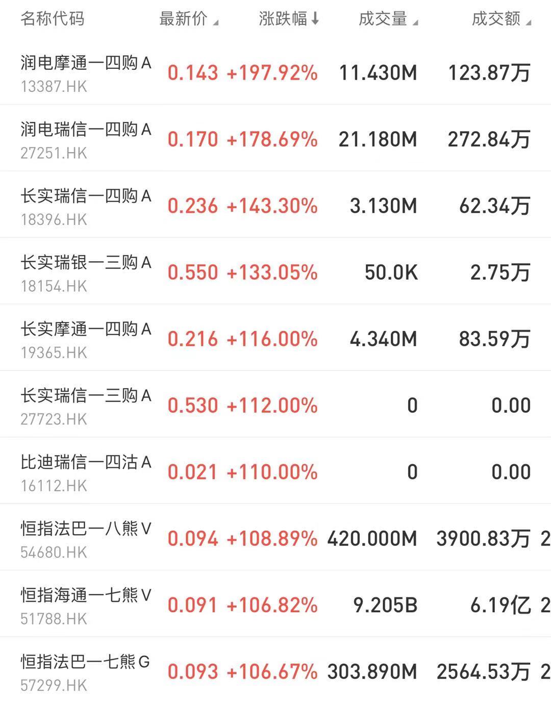 值得注意的是,今日恒生指数有8只熊证涨超100%(包括100%)。