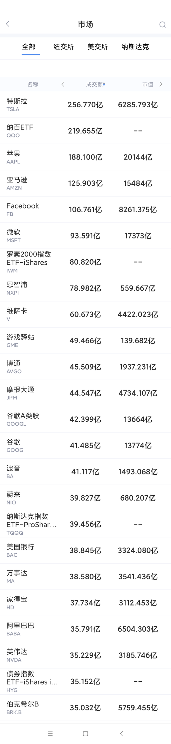 以下为美股当日交易最活跃的20只股票(按成交额):(截图来自新浪财经APP 行情-美股-市场板块 左滑更多数据)下载新浪财经APP