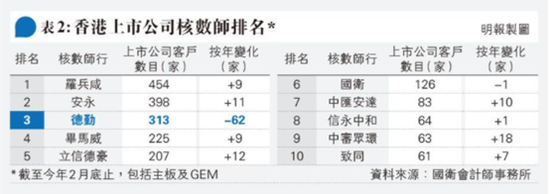 德勤中国区近年精简业务 审计客户锐减