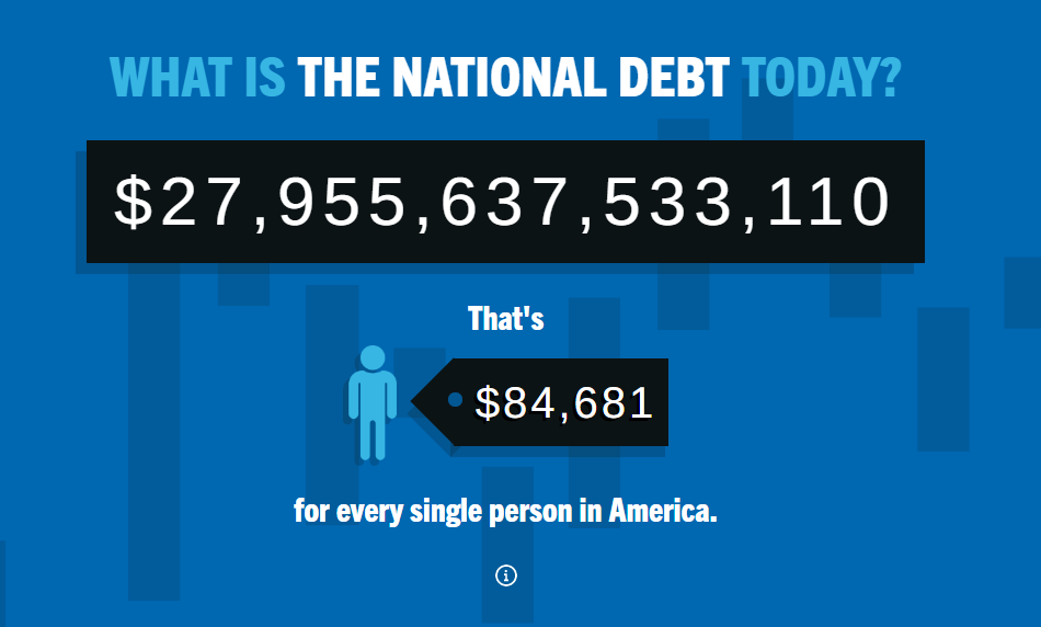 从2019年底的23万亿,到现在美债规模已经逼近28万亿,分摊到每个美国人身上,大约是每人负债将近8万5美元。