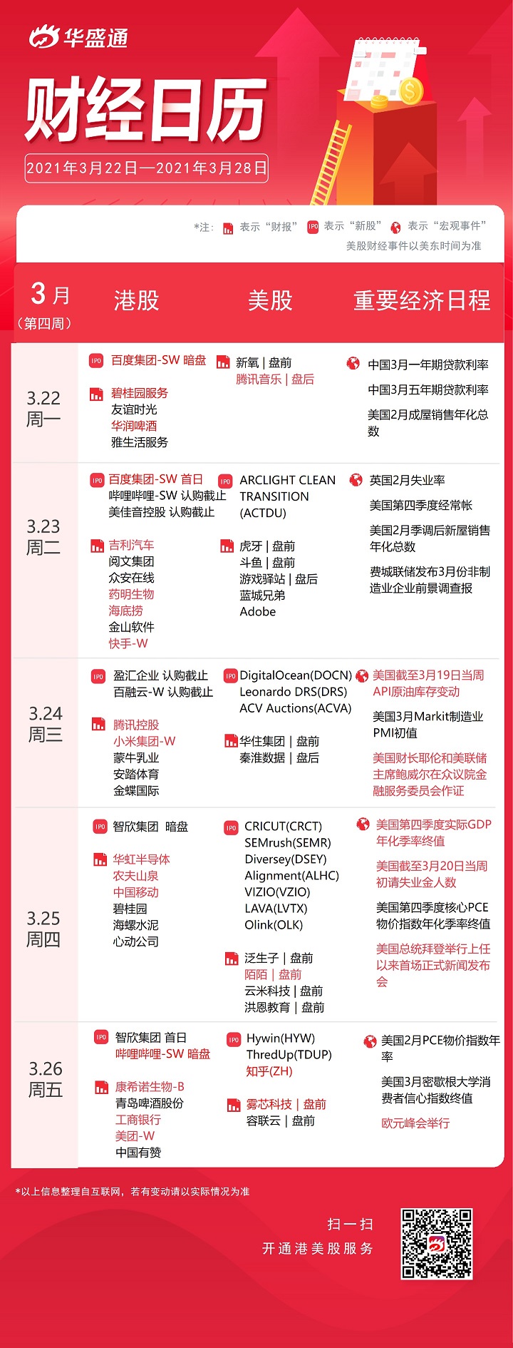 港股方面,本周有3只新股公布中签结果,包括百度集团-SW、哔哩哔哩-SW、智欣集团控股。