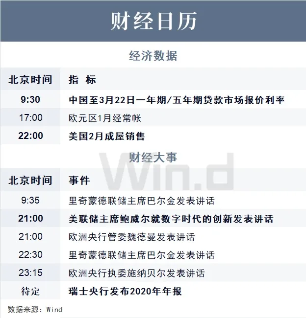 3月20日,美联储主席鲍威尔在华尔街日报发表专栏文章,解释为什么美国去年春季连下猛药救经济,同时继续稳定人心,称复苏远未完成,承诺美联储会“全力”支持经济复苏,只要经济有需要,美联储就会一直提供支持。