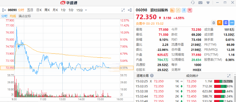 大和发布研究报告,重申碧桂园服务(6098.HK)“买入”评级,目标价由61.2港元升至88港元,列为行业首选之一。