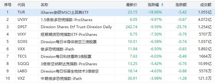 其中,土耳其相关ETF的TUR暴跌18.96%。