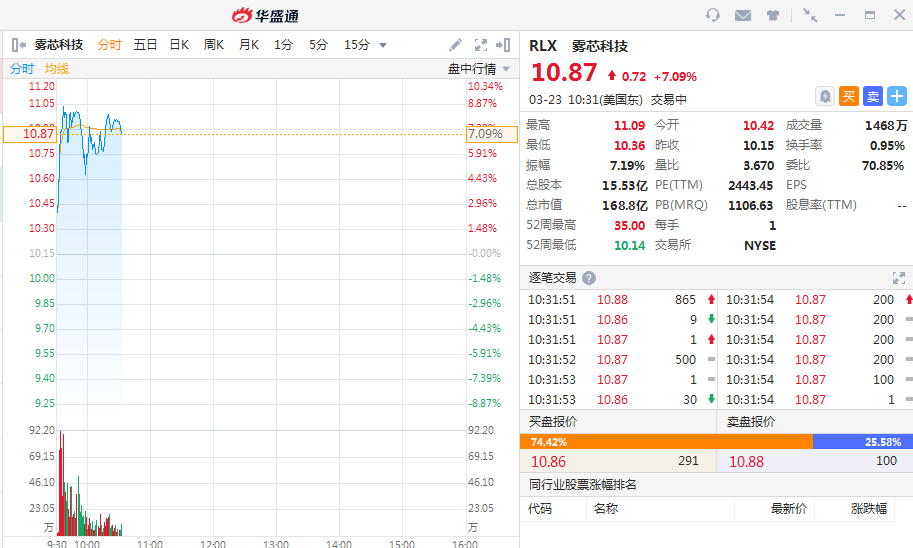 华盛资讯3月23日消息,今日美股盘中,雾芯科技(RLX)股价反弹涨超7%,由于电子烟行业或迎来强监管,该股昨日大跌近50%。