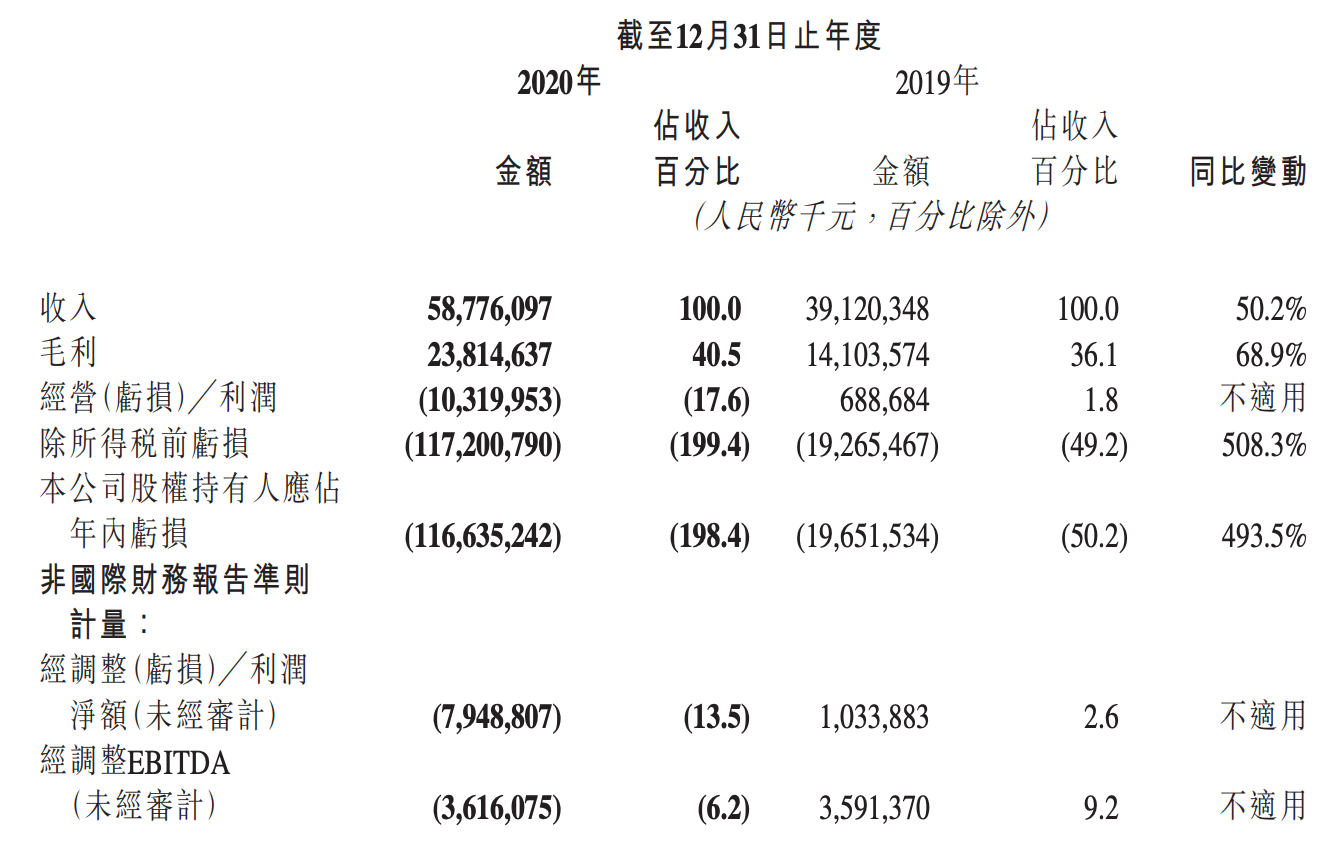 财报显示,快手2020全年营收587.8亿元人民币,市场预估585.8亿元人民币,调整后净亏损79.5亿元人民币,较2019年亏损扩大12.2%。