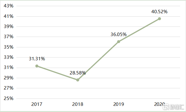 公司整体毛利率连续两年提升,由2019年的36%增长至20年的41%,提升4.5个百分点。其中的主要原因是广告及电商业务占比提高,而直播业务中主播分成比例下降,因此使得整体毛利率提升。