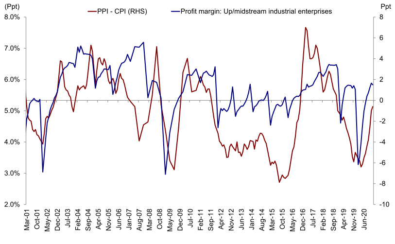 图表: PPI与CPI剪刀差扩大利好中上游企业利润率