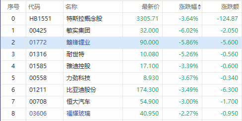 华盛资讯3月24日消息,特斯拉概念股今日集体下跌。截至消息,敏实集团跌超6%,赣锋锂业跌超5% ,耐世特跌超5%,雅迪控股跌超3%,比亚迪股份跌超3%,恒大汽车跌3%。