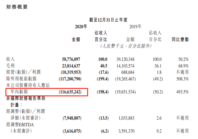 2、2020年全年净亏损高达1166亿元;经调整净亏损79.49亿元,低于市场预期的净亏损92.95亿元;经营利润为亏损103.2亿元,较2019年同期6.9亿大幅增长。