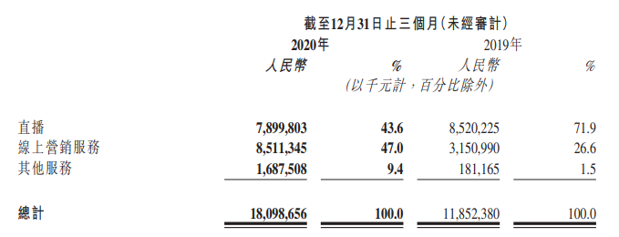 在本次披露的财报中,快手的一大业务亮点是广告收入在2020年四季度达85.1亿元,收入占比达到47%,首次超过直播业务成为最大收入来源。