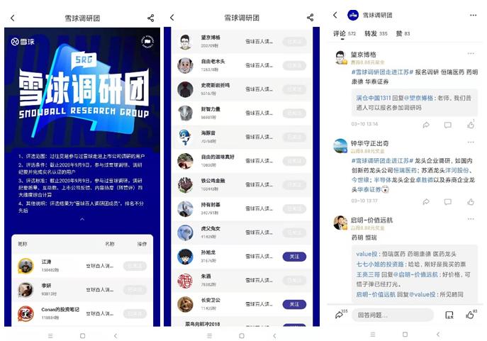 在此次以“走进今世缘”为代表的#雪球调研团走进江苏#系列活动中,在问及球友们后续还想探访哪些江苏龙头企业时,受到了热烈响应。拥有超20万粉丝的资深基金研究达人@望京博格 报名调研包括恒瑞医药(行情600276)、药明康德(行情603259)在内的多家企业。同时,不少其他资深成员也纷纷给出了自己的调研意向。
