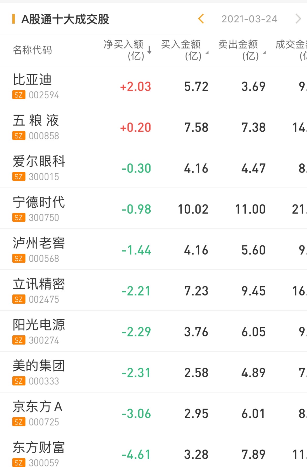 北上资金今日净卖出东方财富4.61亿元,为今日抛售之最.此外京东方也遭净卖出3.06亿元。