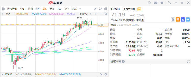 自去年四月以来,Trimble的股价已经翻了一番,但该公司有相当大的增长潜力。如果Trimble能够继续利用自动化领域的机会,它的股票还有继续上涨的空间。周二,Trimble的股价下跌近5%,投资者目前对Trimble的交易价格有些便宜。