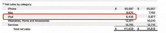 2020年第四季度,苹果iPad业务营收超过84亿美元,同比增长41%,2020全年,iPad的销量达到4550万台,这也是苹果iPad产品线七年以来的首次正增长。