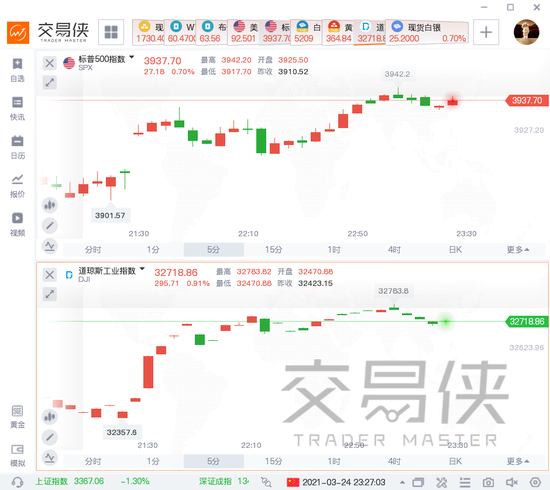 鲍威尔讲话期间,美股盘中持续上行,道指涨幅扩大至1%。
