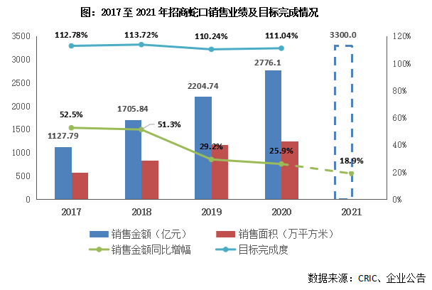 【目标完成率111.04%,业绩跻身行业TOP10】2020年招商蛇口全年累计实现签约销售金额2776.1亿元,同比上升25.9%,目标完成率111.04%,销售全口径及权益口径业绩规模跻身行业前十;2021年招商蛇口总可售货值超5300亿元,合同销售目标约为3300亿元,去化率达到62%即可完成。