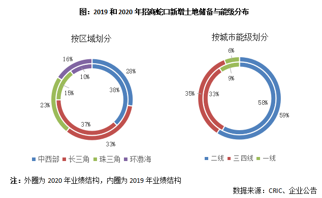从销售结构来看,招商蛇口2020年城市深耕成效显著。年内,招商蛇口7家城市公司突破百亿销售,分别是杭州、苏南、上海、深圳、南京、广州、宁波;华东、深圳、西南、华南、江南5个区域销售金额增速超过20%;超过30%的城市销售规模实现当地TOP10。