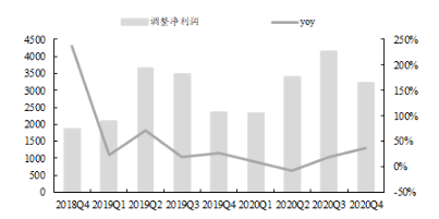 包装与运输开支由2019年第四季度的人民币822.5百万元增加28.8%至2020年第四季度的人民币1,059.2百万元,主要是由于境外业务扩张。毛利率的大幅上升和销售费用率的略微提升导致公司经调整净利率水平有所下降。