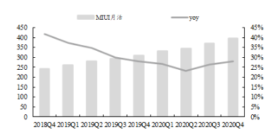 本季度,MIUI月活跃用户数达到396.3百万,同比增长28%。