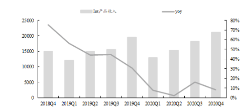 IoT与生活消费产品分部毛利率由2019年第四季度的9.4%增至2020年第四季度的12.1%,主要是由于毛利率较高的IoT产品增长强劲。