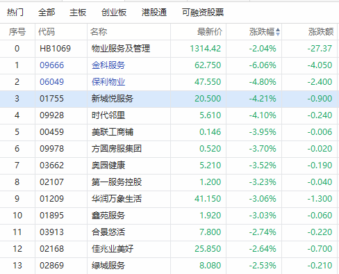 华盛资讯3月25日消息,物业服务及管理板块早盘下跌。截止发稿,金科服务下跌超6%,保利物业跌超4%,时代邻里跌超4%,华润万象生活跌超3%。
