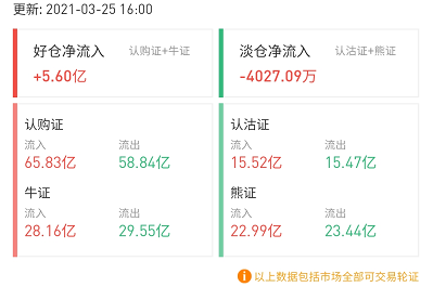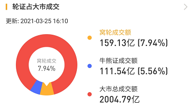 其中,窝轮总成交159.13亿港元,牛熊证总成交111.54亿港元。