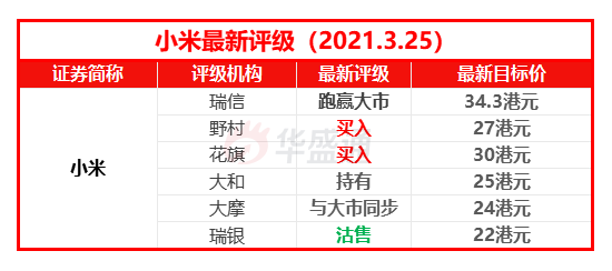花旗:重申小米集团-W(01810)【买入】评级 目标价30港元