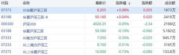 沪深300指数跌0.05%。其中,南方做空沪深三百ETF涨0.35%,成交额945.7万港元;南方两倍做多沪深三百ETF跌0.51%,成交额3165万港元。
