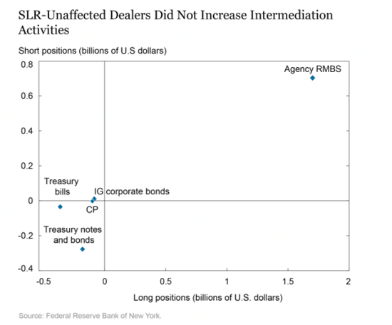 此外,还有监管和自营商资产负债表能力。监管可能通过要求自营商为监管目的持有更多资本来限制自营商的中介活动。例如,补充杠杆率(SLR)要求大型银行持有的一级资本占资产负债表内外总风险敞口的最低比例为3%。