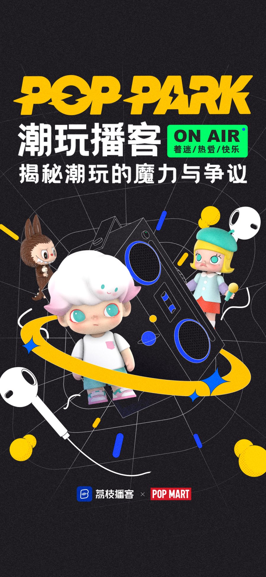 2020年底,泡泡玛特与荔枝播客达成战略合作,并于2021年3月17日正式发布潮玩播客POP PARK,被认为是潮玩出圈进入声音时代的重要尝试。