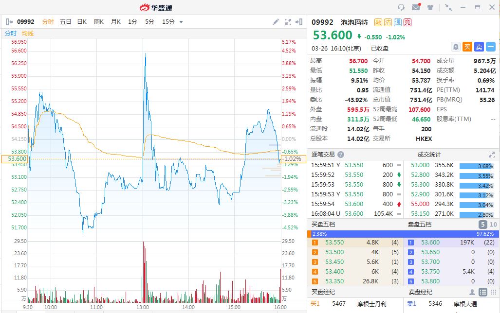 今日午间,泡泡玛特发布了2020财年财务报告。截至收盘,泡泡玛特跌1.02%,报53.6港元。