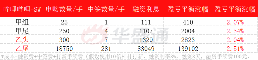 甲尾融资打新250手,利息1107港元,盈亏平衡点2.54%;