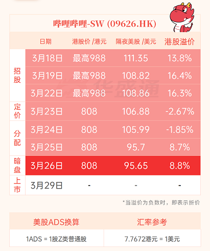 以隔夜美股收盘价来看,B站的港股较美股溢价约8.8%。