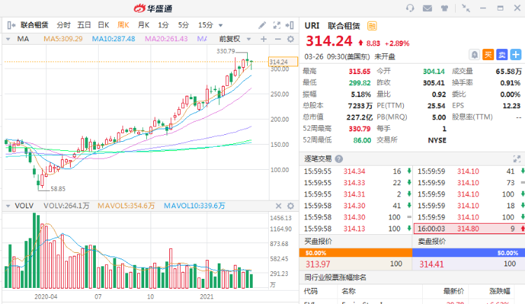 联合租赁今年迄今为止已经累计上涨了35.5%,近期公司股价一路飙升,从7月以来已经上涨了一倍多,华尔街似乎也已经将该股的利好提前消耗了,但是,未来2-4万亿美元的基建规模,仍会给公司提供较大的增长空间。
