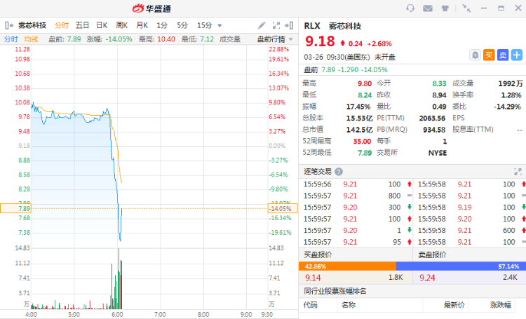 财报发布后,雾芯科技盘前股价迅速跳水一度跌超20%,截至发稿跌幅收窄至14%。