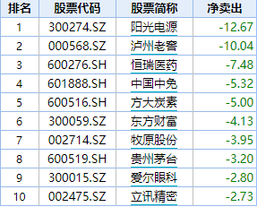 本周,北上资金净卖出最多的个股是阳光电源,一周抛售额达12.67亿元。此外,泸州老窖也遭抛售10.04亿元。